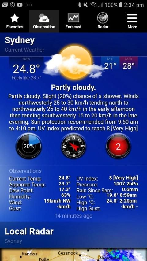 - अगले 72 घंटे के लिए विशेष 3 हर घंटे मौसम और ऑस्ट्रेलिया में सभी स्थान के लिए अगले 7 दिनों के लिए 6 प्रति घंटा पूर्वानुमान।