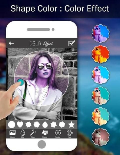 - आकार रंग संपादक = आप किन आकार के बहुत सारे के साथ रेट्रो प्रकार फोटो प्रभाव दिखा काले और सफेद फोटो के साथ पृष्ठभूमि प्रभाव सेट स्क्वायर, गोल, त्रिभुज, मौखिक, फूल, हीरा आदि जैसे शामिल