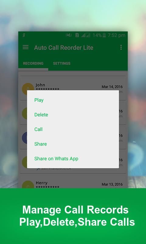 खेलने के लिए अपने कॉल रिकॉर्ड का उपयोग करें हटाएँ, शेयर dirctly कई soical medims के माध्यम से
