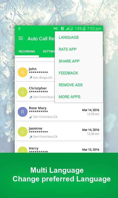 ऑटो कॉल रिकॉर्डर लाइट आप अपने बहुमूल्य / इनकमिंग और आउटगोइंग कॉल रिकॉर्ड करने में मदद करता है,