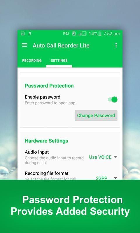 पासवर्ड सुरक्षा: आप पासवर्ड secutiy के साथ app सुरक्षित और अवांछित लोगों को अपने निजी फोन रिकॉर्ड्स बंद करो।