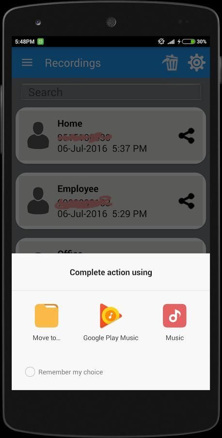 >> आप खेल सकते हैं, सहेजें और कॉल रिकॉर्डिंग को हटा दें।