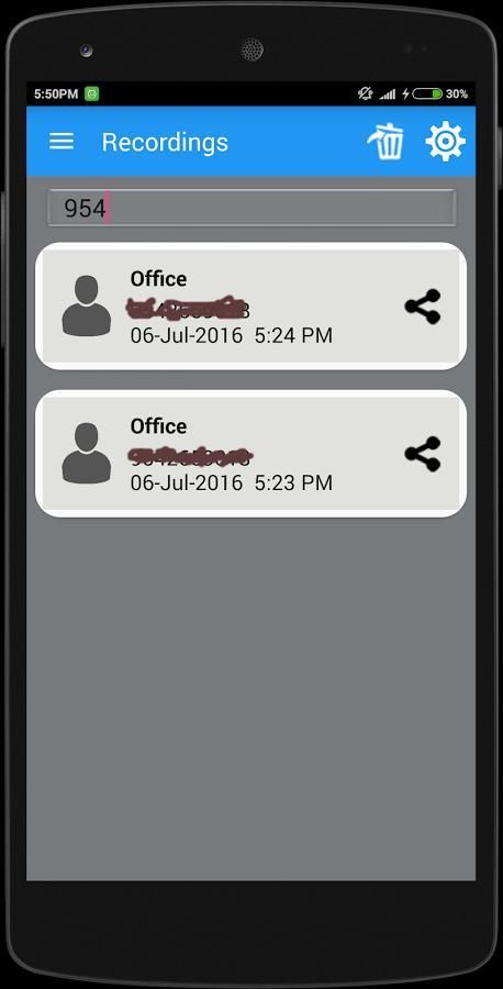 > इस अनुप्रयोग में, आप एक समय में सभी रिकॉर्ड नष्ट कर सकते हैं आइटम, ऑटो कॉल रिकॉर्डर अंतिम आप अपने सभी फोन पर बातचीत रिकॉर्ड और उन्हें प्रबंधित करने के लिए सबसे आसान तरीका देता है। फोन नंबर से रिकॉर्डिंग के लिए खोजें। अनुप्रयोग स्वचालित रिकॉर्डिंग के लिए डिफ़ॉल्ट सेटिंग्स प्रदान करता है।