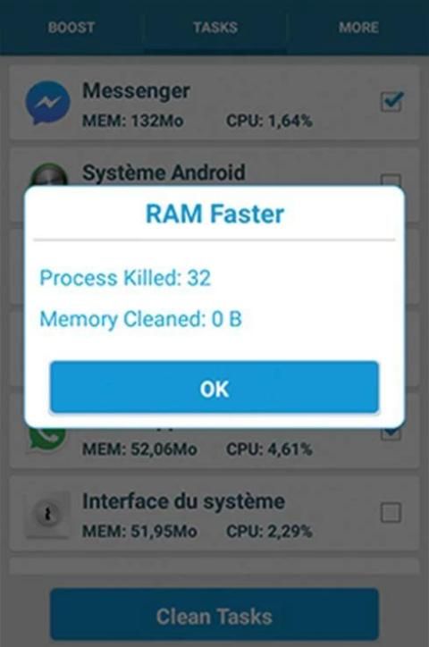 जब आपके फोन स्मृति उपयोग उच्च है, ऑटो स्वच्छ स्मृति आप एक नल के साथ अपने फोन को बढ़ावा देने के लिए सूचित करेंगे।