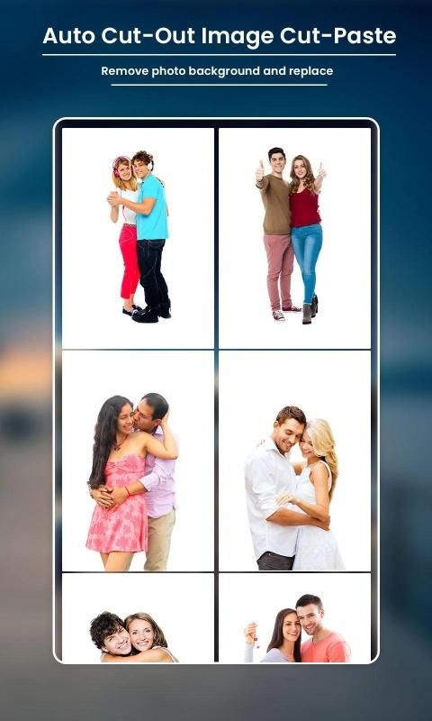 Background Removal Erase photo background to transparent and add different beautiful backgrounds, edit it with so many options like stickers, text font, text shadow, text color, duplicate your cut out and more. Cut out has more than 60 different HD beautiful backgrounds for you as road, beach, forest, autumn, sunset, ... Addition you can choose your photo from your gallery and set as new background.