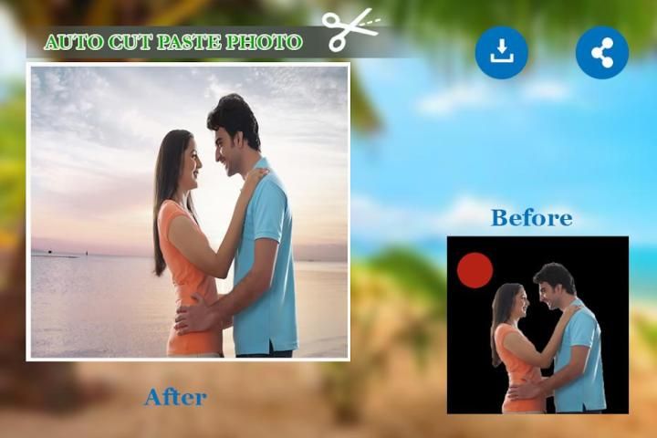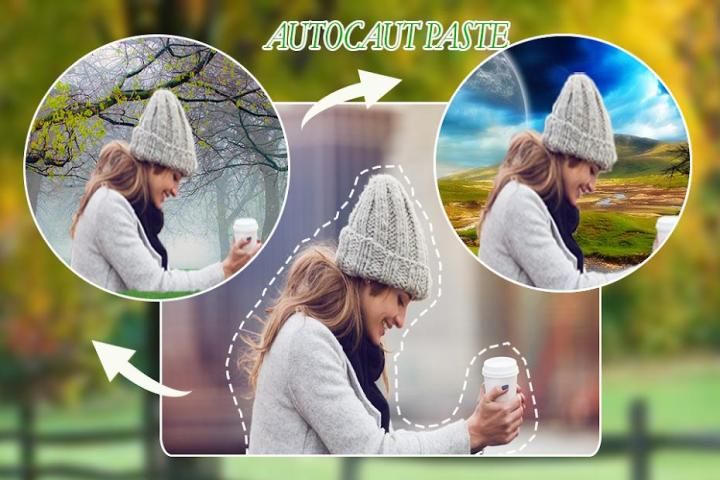 ऑटो कट पेस्ट फोटो जिसे आप ऑटो चयन टूल के साथ स्वचालित रूप से छवि के किसी हिस्से को काट सकते हैं और इसे आसानी से सेट की गई किसी अन्य छवि या पृष्ठभूमि पर पेस्ट कर सकते हैं।