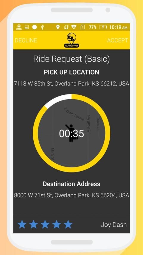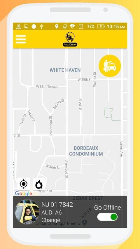 आवेदन चालक को ऑनलाइन और के माध्यम से यात्राएं प्राप्त करने में मदद करता है