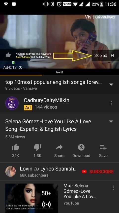 YouTube विज्ञापन को छोड़ देगा और एक सेकंड में अगला वीडियो चलाएगा
