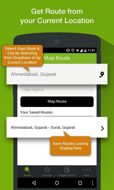 सुविधाओं की एक किस्म के साथ विन्यस्त, आवेदन "खोज और पता लगाने" एक पास सीएनजी या एलपीजी गैस स्टेशन या किसी राज्य या शहर में आप यात्रा की योजना बना रहे हैं के लिए एंड्रॉयड डिवाइस उपयोगकर्ताओं के लिए एक उन्नत इंटरफेस के रूप में कार्य करता है.