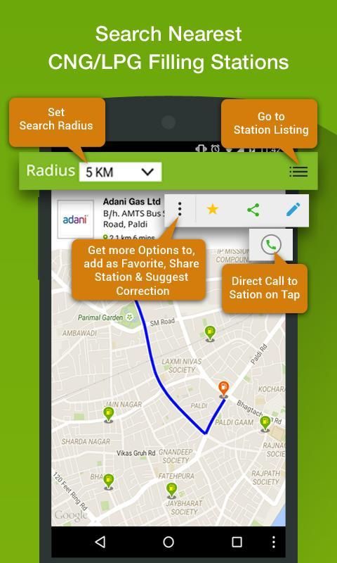 आवेदन ऑफलाइन मोड में काम करता है और 12 भारतीय राज्यों और उनके मुख्य शहरों में सीएनजी और एलपीजी स्टेशनों के बारे में जानकारी प्रदान करता है.