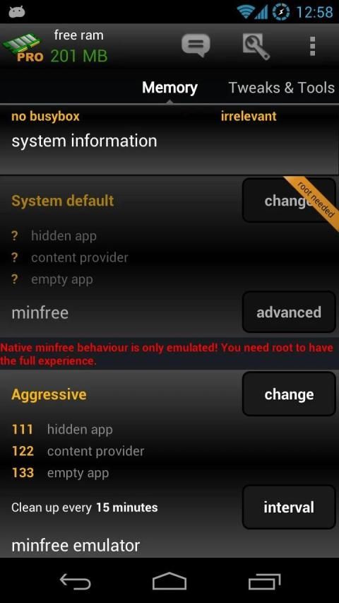 - इस सुविधा का minfree मूल्यों को निर्धारित करने के लिए unrooted, उपकरणों ही होगा एक अनुकरण आवश्यक