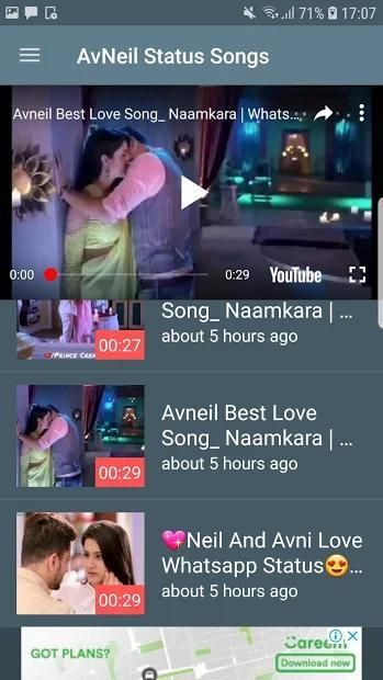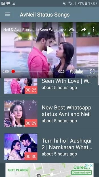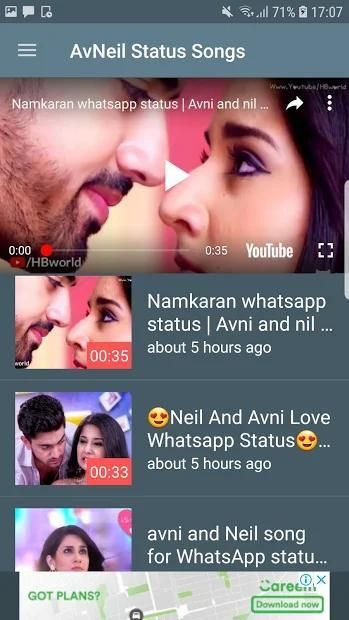 Avneil Serial Video Status Contains the tv serial video song ,title song ,romantic song etc.AVNeil VIdeo Status for WhatsApp app has unique video status for set the whatsApp video status.