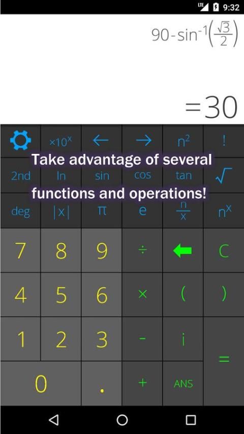 - वैज्ञानिक संकेतन के लिए सुविधा बटन के लिए आसान पहुँच डिग्री / रेडियंस टॉगल और दूसरों