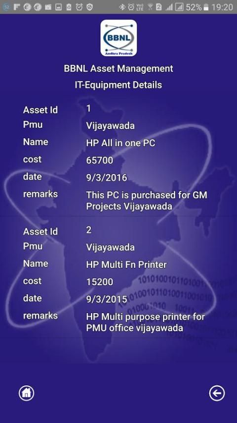 बीबीएनएल एसेट मैनेजमेंट अनुप्रयोग एक प्रभावी तरीके से संगठन की संपत्ति डेटा स्टोर करने के लिए विकसित की है और समय के किसी भी बिंदु पर सामग्री देखने के लिए उपयोगी हो सकता है। आईटी संपत्ति, फर्नीचर और फ़ाइलों को किसी भी कार्यालय की नियमित रूप से संपत्ति कर रहे हैं।