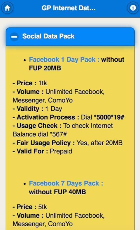 - Updated Airtel & Teletalk 3G Internet Pack.