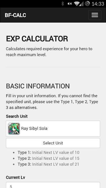 BF-Calc is a fan made tool and calculater created to help Brave Frontier players, based on Brave Frontier Wikia. We want Brave Frontier players to focus on their game and leave the trivial calculations to us. The current existing calculators are EXP Calculator, Team Unit Cost Calculator, Metal Calculator, and Zel Calculator.