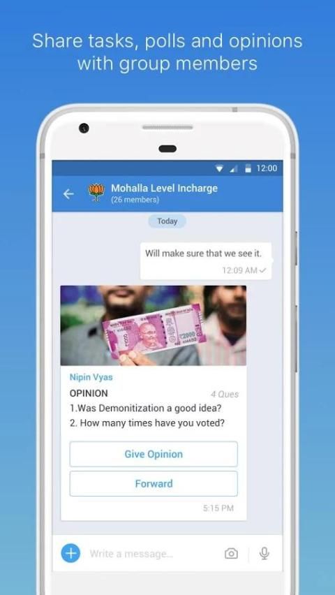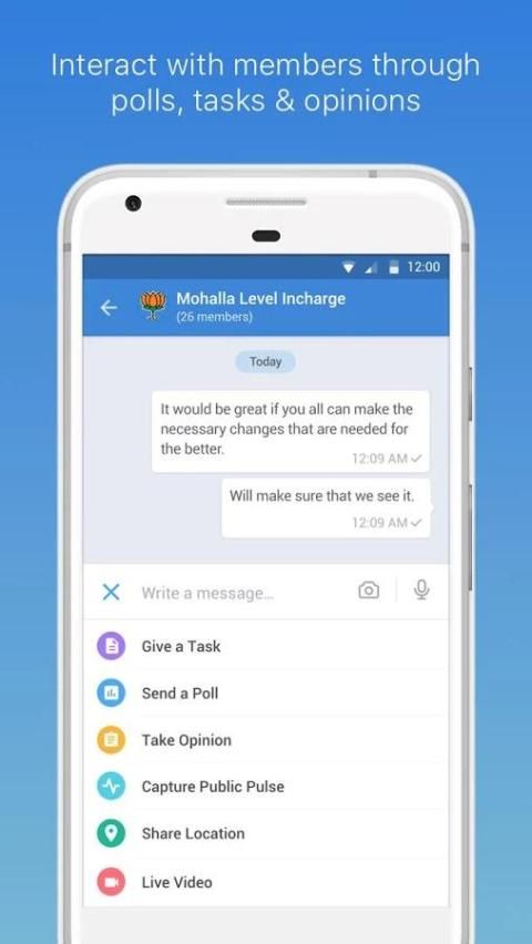 ये चैट समूहों, व्यवस्थापक आचरण चुनाव में मदद करने के कार्यों को प्रदान करते हैं राय ले, सार्वजनिक नाड़ी को पकड़ने और लाइव वीडियो प्रसारण संगठनात्मक पदानुक्रम का समर्थन करेंगे।