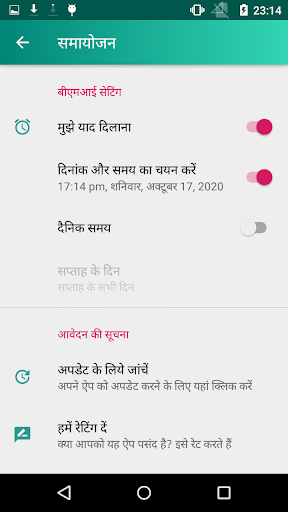 • बीएमआई की गणना करने और हर दिन अभ्यास करने के लिए याद रखने में आपकी मदद करने के लिए अनुस्मारक की पेशकश करें।