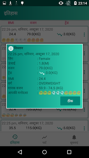 • बीएमआई से संबंधित अपनी जानकारी सहेजें और पूरे समय अपने वजन को ट्रैक करें।