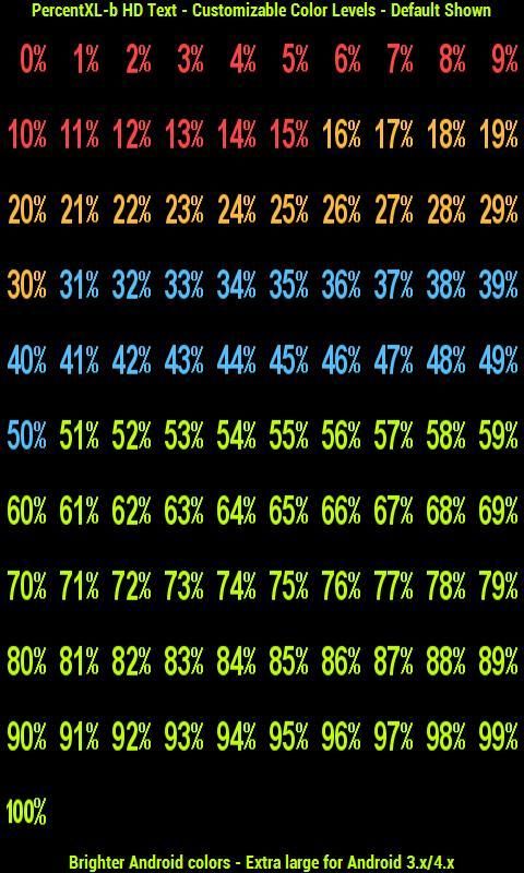 HD के लाभ विकल्प मानक फोंट की तुलना में 50% अधिक संकल्प किया है। प्रतिशत चिह्न शामिल है जो हम आधिकारिक Android के रंगों में की पेशकश की सबसे बड़ी फ़ॉन्ट जो चाहते हैं कि उच्च घनत्व स्क्रीन (अधिकांश उपयोगकर्ताओं) के साथ उपयोगकर्ताओं के लिए।