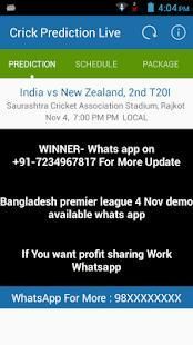 Cricket Prediction Live is a live predictor where all you have to do is predict who is going to win the match. On the basis of pitch reports, previous performance of team, weather etc.