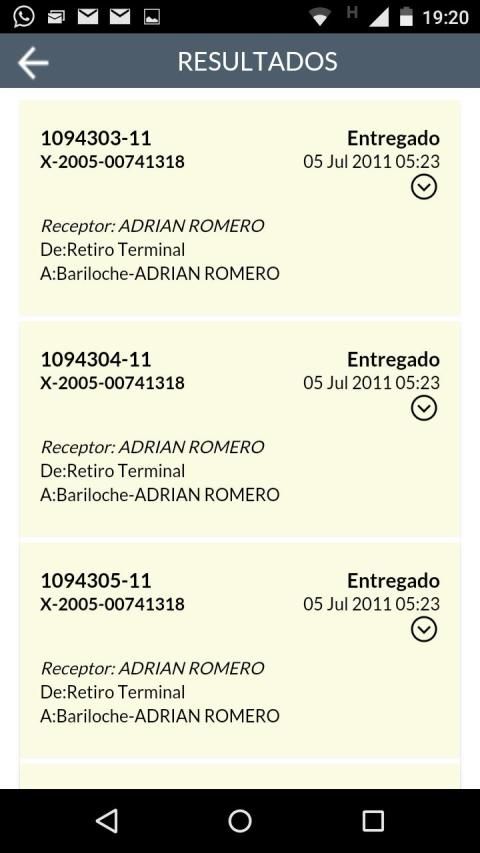 - Detalle del historial de eventos y estadíos por los que transitó el paquete enviado