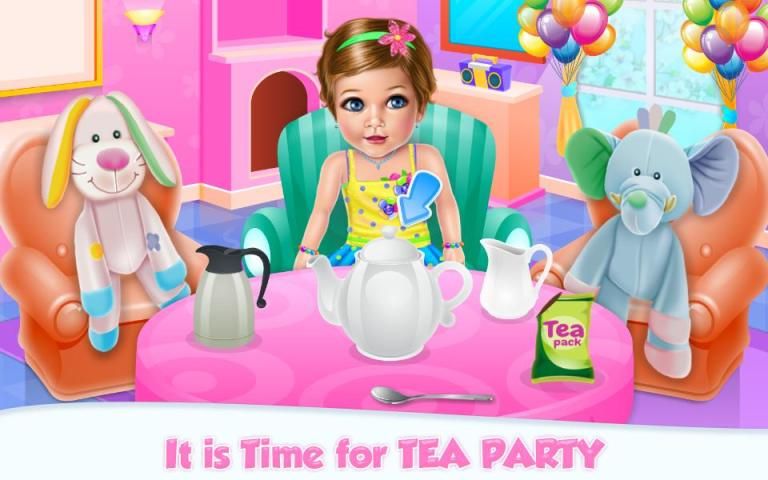 When the cleaning is done you can move to the preparing phase, which implies some decoration issues. Choose the shape of the sticker and design it on your own like. Now that the room is cleaned up and the decorations are ready all you have to do is to get ready the guests and invite them to the table for the tea party. Put on the boiled water, add the tea and mix it well with some sugar to concretize the flavor. The party should begin once you've accomplished all the tasks. Have fun and play with Eva while you too are doing fun activities together.