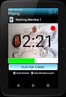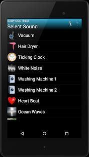 एक साथ पारंपरिक लोरी के साथ, एक हेयर ड्रायर, वॉशिंग मशीन, वैक्यूम क्लीनर, सफेद शोर और सागर की लहरों में शामिल हैं जो 13 विभिन्न सुखदायक ध्वनियों से चुनें। अपने चुने अवधि के लिए प्रत्येक ध्वनि दोहराएँ।