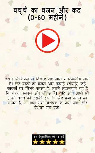 बेबी हाइट एंड वेट अप्प एक फ्री हेल्थ आप है जो माता-पिता को ये जानने में मदद करता है कि क्या उनका बच्चे का विकास समान्य ढंग से हो रहा है या फिर उनको इस विषय में किसी डॉक्टर से सलाह लेने की जरूरत है।