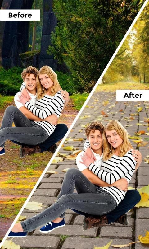 Erase photo background to transparent and add different beautiful backgrounds, edit it with so many options like stickers, text font, text shadow, text color, duplicate your cut out and more. Photo Background Changer has more than 90 different HD beautiful backgrounds for you as road, beach, forest, autumn, sunset, ... Addition you can choose your photo from your gallery and set as new background.