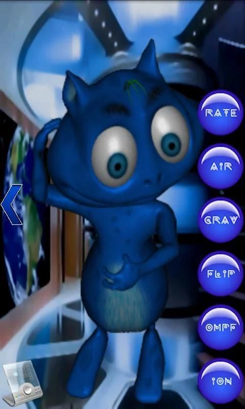 Izar is fully animated and reacts to every touch and gesture imaginable with hundreds of different sound effects. You can poke, pinch, slap, fling, twirl, touch, shake, decompress, activate gravity, etc., but be careful: if you make Izar too angry, he'll simulate breaking your screen or zapping you with his ion pulse gun! Be careful about squishing Izar down as he lets out a dozen funny different alien gassers!