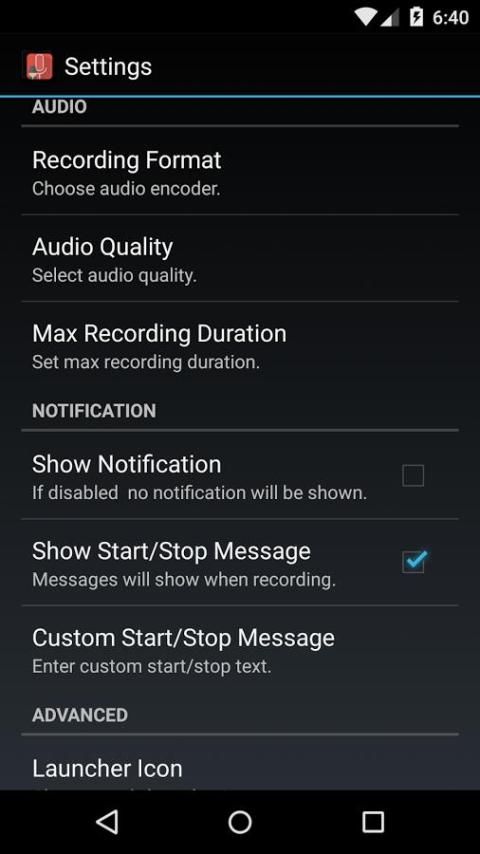 • Compatible with Tasker to configure triggers to automatically start and stop audio recording.