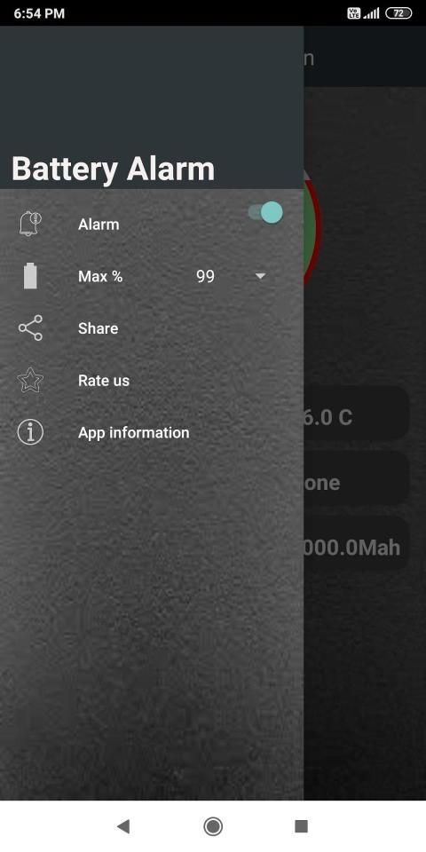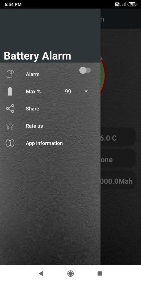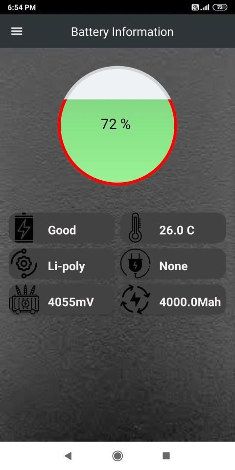 यह एप्लिकेशन उपयोगकर्ता के लिए उपयोगी है, जो अपने कामों में व्यस्त है और प्लग-इन से फोन को डिस्चार्ज करना भूल गया है। इस एप्लिकेशन में बैटरी की बैटरी, चार्जिंग या डिस्चार्जिंग फोन, बैटरी की तकनीक, बैटरी की क्षमता, और सबसे महत्वपूर्ण जैसे फोन की बैटरी के बारे में सभी जानकारी है। बात शक्ति का वोल्टेज है।