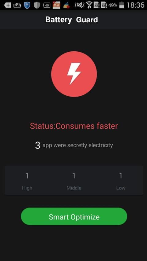 बैटरी गार्ड स्वतंत्र अनुप्रयोग है। यह मदद कर सकता है आप एक बटन के स्पर्श में बैटरी सत्ता बचाने के लिए। बिजली की खपत रैंकिंग स्मृति स्क्रबिंग और पृष्ठभूमि कार्य बंद नीचे सहित अपने कई सुविधाओं के साथ, आप आसानी से बैटरी सेविंग मोड बदलने के लिए और बैटरी जीवन का विस्तार कर सकते हैं।