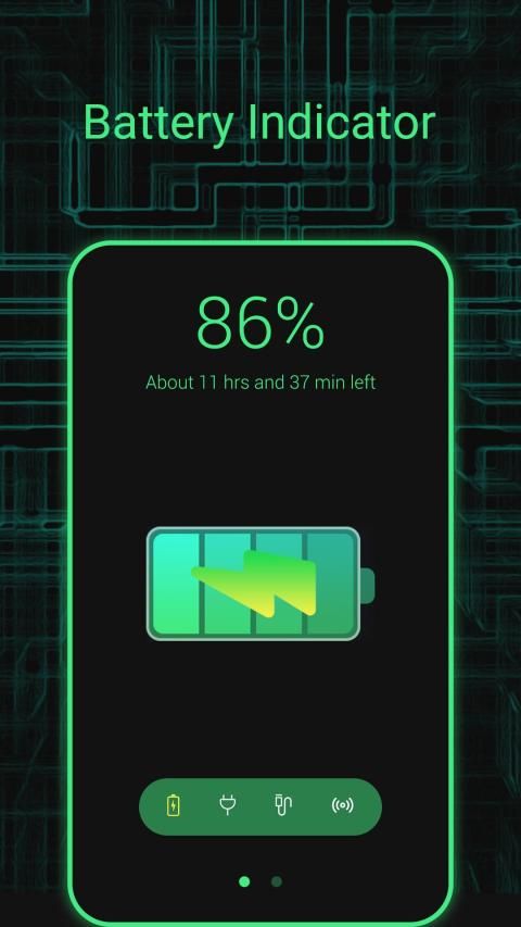 Description: Provide charging information, remaining battery time,and when you use the application, monitor the power consumption in real time and make a reminder. Divided into green, orange and red colors according to electricity. When your battery is less than 20%, a red warning will be displayed and a reminder will sound to remind you to charge.