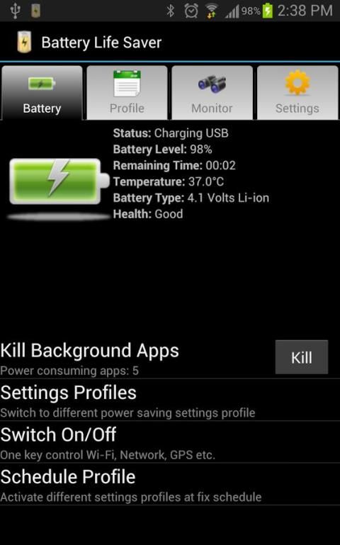 Battery Life Saver also monitors your phone to note, which apps or phone features consume most battery and processing power. Battery Life Saver also reports, which apps consume most LCD display time, Wi-Fi and 3G/4G internet.