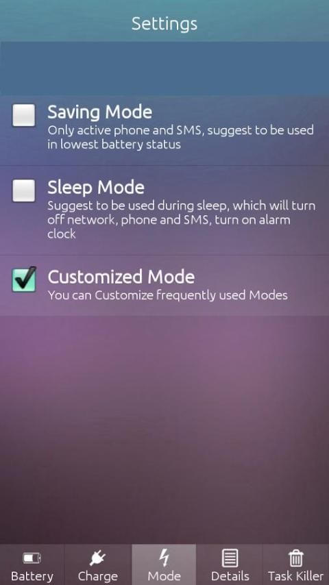 - विजेट है कि एक स्वनिर्धारित यूजर इंटरफेस के साथ बैटरी के प्रदर्शन में सुधार