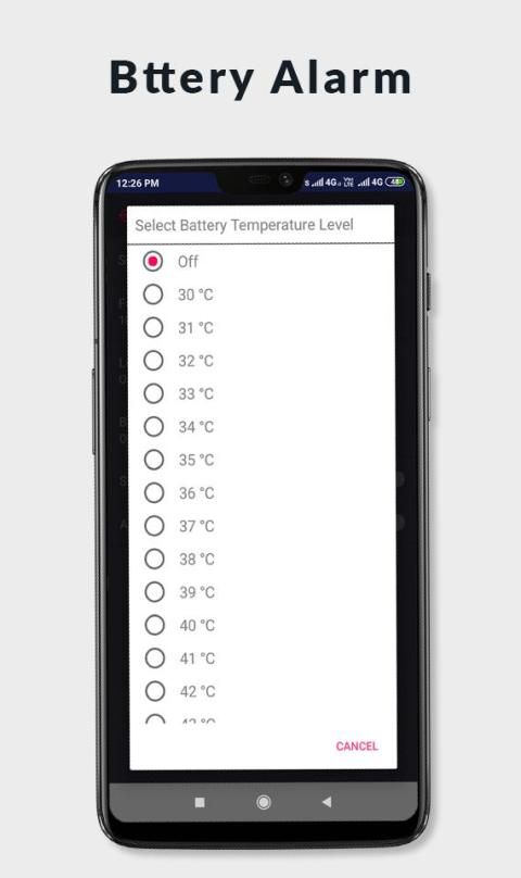 = बैटरी अलर्ट स्तर उपयोगकर्ता द्वारा चुना जा सकता है।