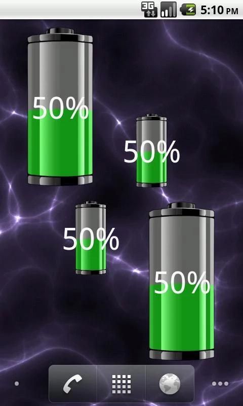 बैटरी जो विजेट फोन की बैटरी के सुंदर के तस्वीर के उपयोग से पता चलता है, हरी बैटरी चमक. बैटरी के स्तर के रूप में फोन का निर्वहन रहता कम है.