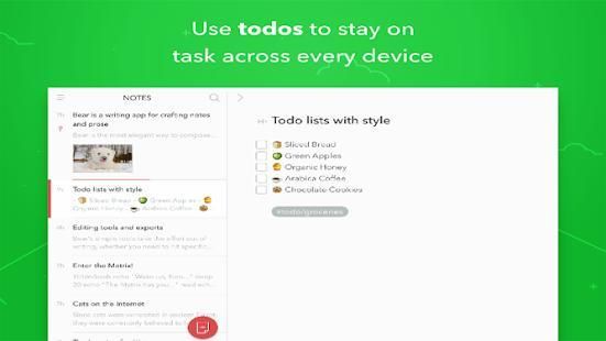 Bear is perfect for everything from quick notes, to code snippets, to in-depth essays. A focus mode helps you concentrate, and advanced Markdown and other markup options are an online writer's best friend. Full in-line image support brings your writing to life, and keep yourself on task by adding todos to individual notes.