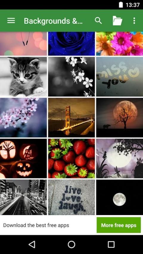 वॉलपेपर और पृष्ठभूमि एच.डी. आप अपने एंड्रॉयड फोन और टैबलेट के लिए सबसे अच्छा वॉलपेपर देता है। इस एप्लिकेशन को आप कुछ अच्छी तरह से ज्ञात छवि साझा सेवाओं से खोज करने के लिए क्रिएटिव कॉमन्स वॉलपेपर अनुमति देता है।