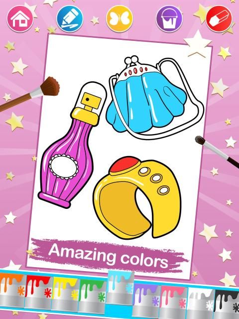 You can fill the colors in prepared image outlines and can also create your own original drawings. It is so simple and easy even the youngest kids can play it. The game includes a lot of beautiful images of famous and beloved beauty products, clothes, hats, sunglasses, jewelry, bags and wallets.