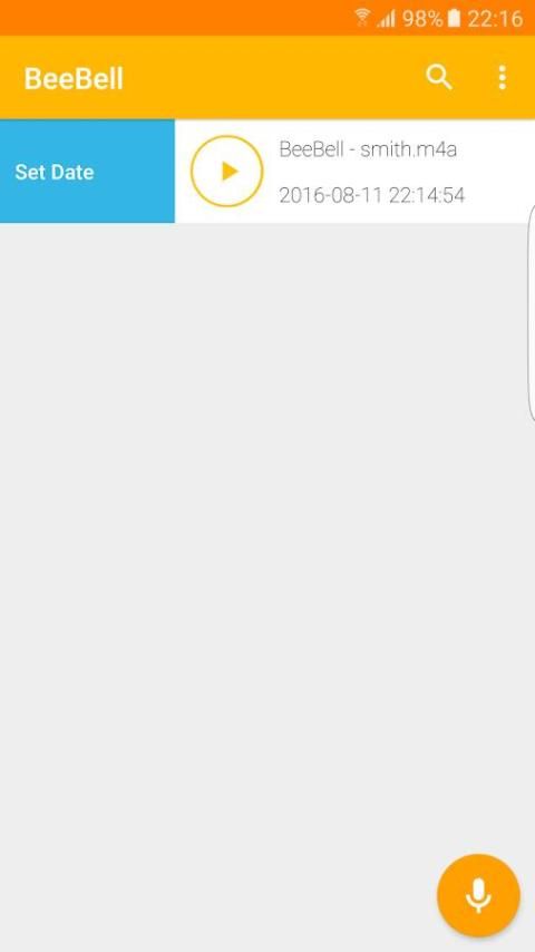 आप नोट रिकॉर्ड करने के लिए चाहते हैं, यह भी बहुत आसान है। एप्लिकेशन को ठोकर, BeeBell तुरंत रिकॉर्डिंग शुरू कर देंगे। जब आप रिकॉर्डिंग खत्म बस छोड़ दिया करने के लिए और रिकॉर्डर नोटों अनुप्रयोग के भीतर बचाया जाएगा स्वाइप करें।