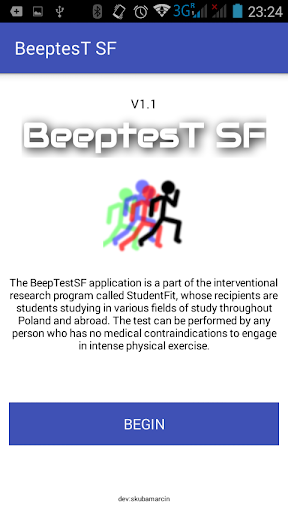 The BeepTestSF application is a part of the interventional research program called StudentFit, whose recipients are students studying in various fields of study throughout Poland and abroad. The test can be performed by any person who has no medical contraindications to engage in intense physical exercise.