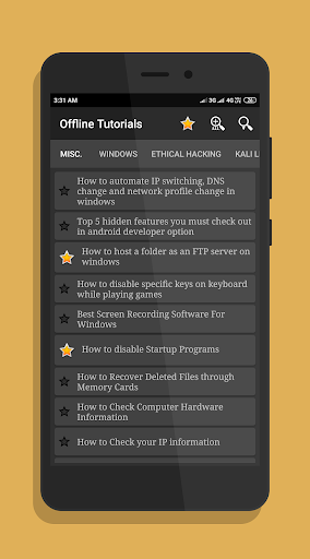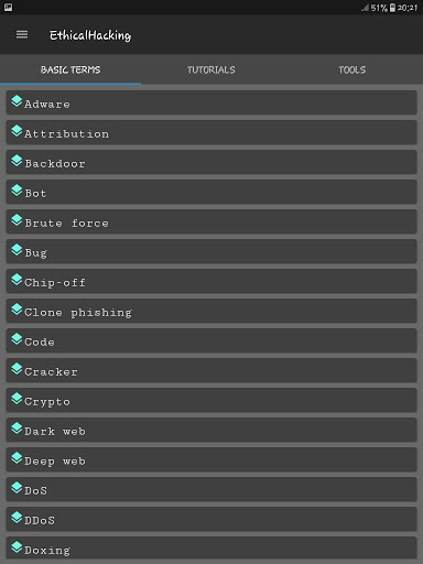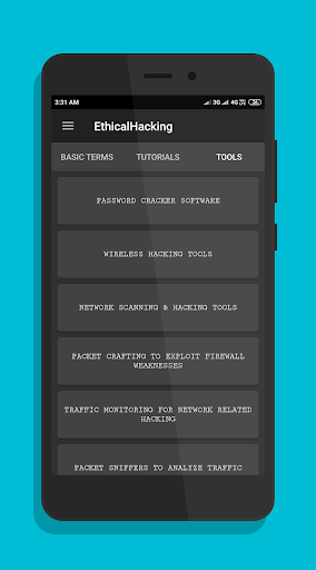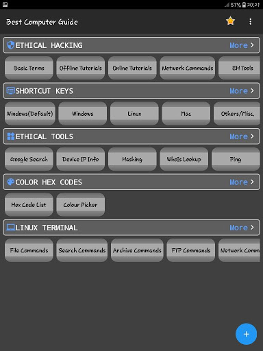 This App provides a huge collection of Ethical Hacking Tools, Tutorials and Computer Shortcut Command Keys and Network Utilities...