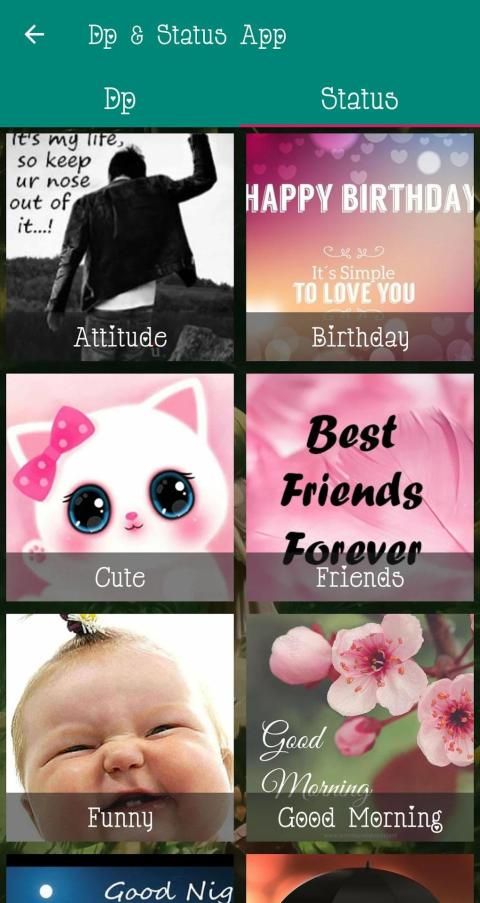 Best Dp images and status App brings lot of collections for your social media accounts. You can change your DP(Display Picture) and Status according to your mood,situation and emotions. This app has good collections of Profile Dp's and Status quotes for your accounts. This Dp & status app is completely free with latest collections. This app have more than