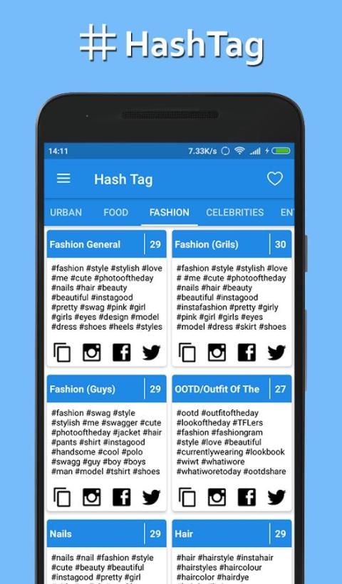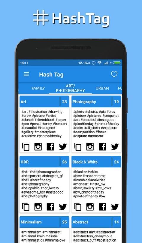 बस एक श्रेणी चुनें, 'कॉपी' तो Instagram, फेसबुक या ट्विटर खोलने के लिए और अपने चित्रों और पदों पर चस्पा नल!
