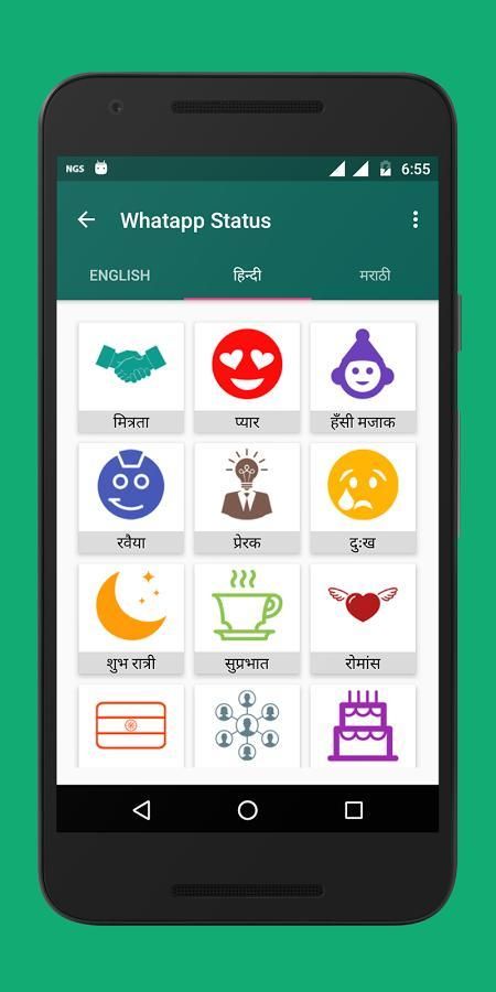 आप तमिल में WhatsApp, मराठी, हिंदी, अंग्रेजी और के लिए स्थिति और उद्धरण पा सकते हैं कई और अधिक