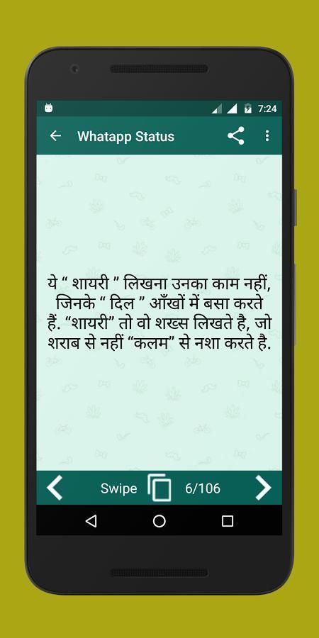 उपयोगकर्ता दैनिक अद्वितीय स्थिति सेट और उनके WhatsApp और फेसबुक और अन्य सामाजिक साइटों में संदेश उद्धरण कर सकते हैं।