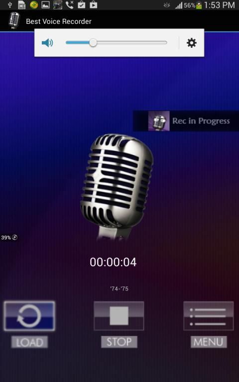 2) Song and Voice recording, which allow the user to select the desired song by pressing the load button from the main screen and sing along with the song flow after pressing the record button. This allows the user to record own song with instrumental sound-tracks or any other existing songs can be recorded along with the user's voice. In other words Karaoke can be achieved, for now the lyrics is not supported.